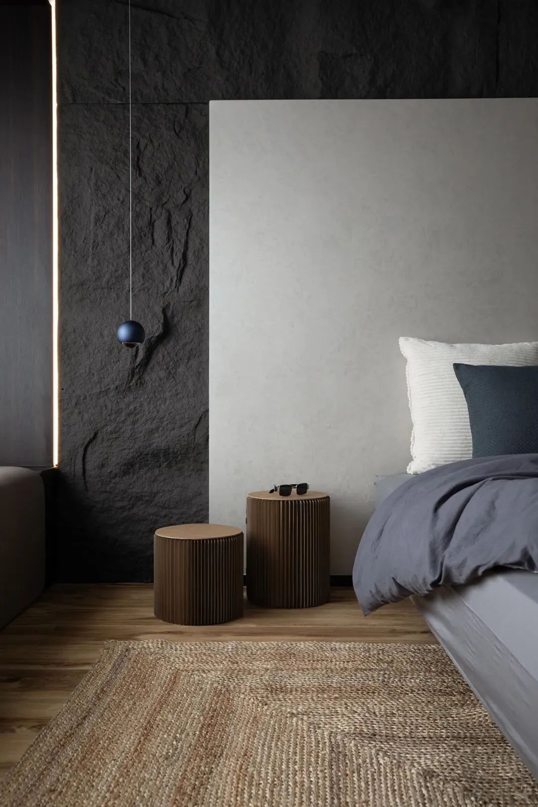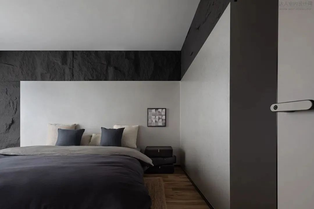 主臥的空間內(nèi)也采用了與客廳相同的背景涂料,這樣高級(jí)灰的色彩能夠適應(yīng)大多數(shù)都場(chǎng)景,與不同材質(zhì)的家具也有比較好的適配性。