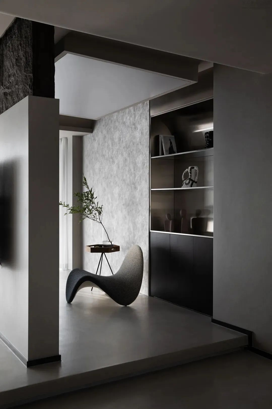 內(nèi)斂的高級(jí)灰到木質(zhì)茶幾和金屬座椅的過(guò)渡,從靜謐的水泥墻到符合人體工學(xué)的科技座椅,這樣新奇的搭配往往能夠產(chǎn)生奇妙的效果。