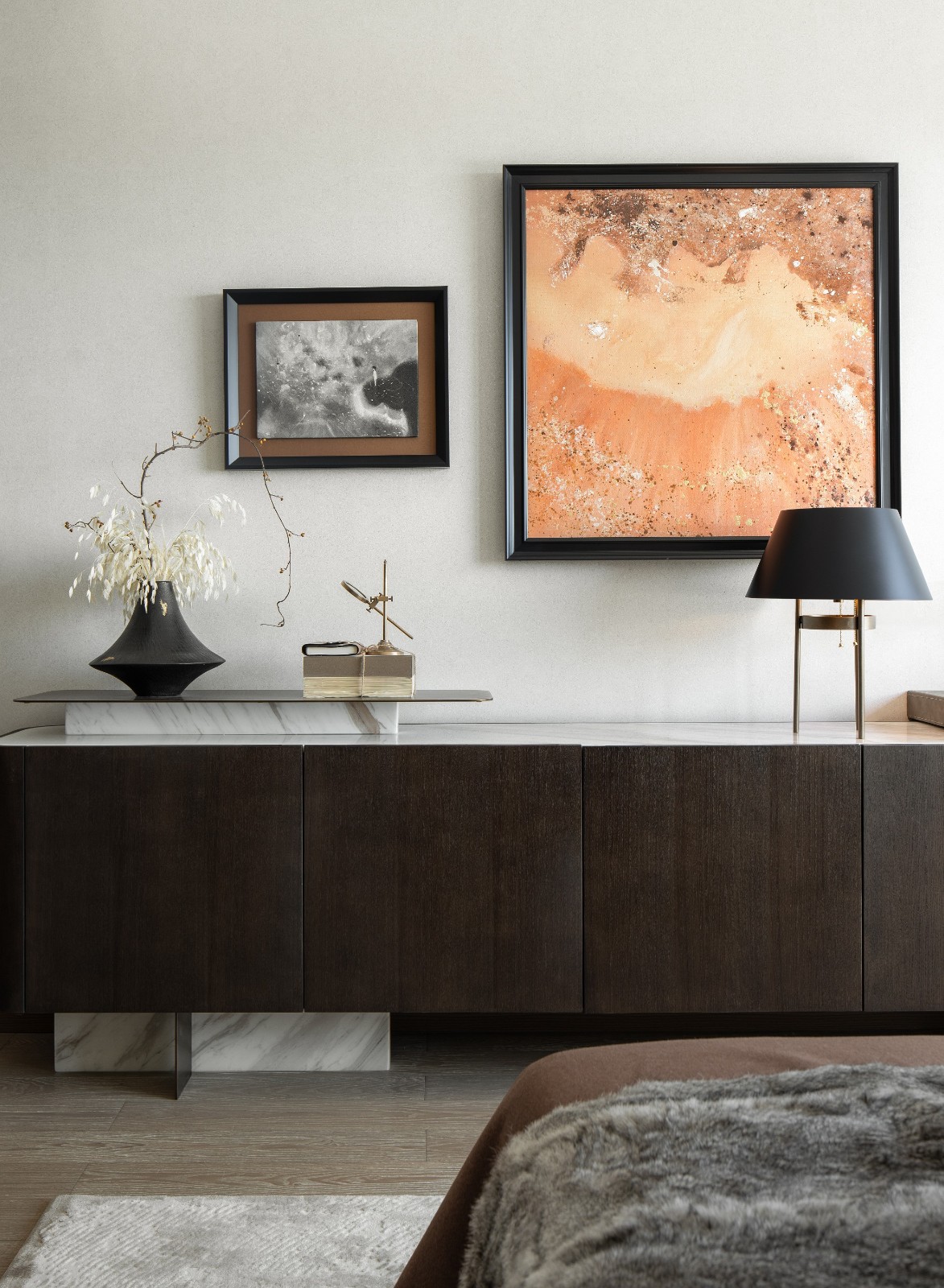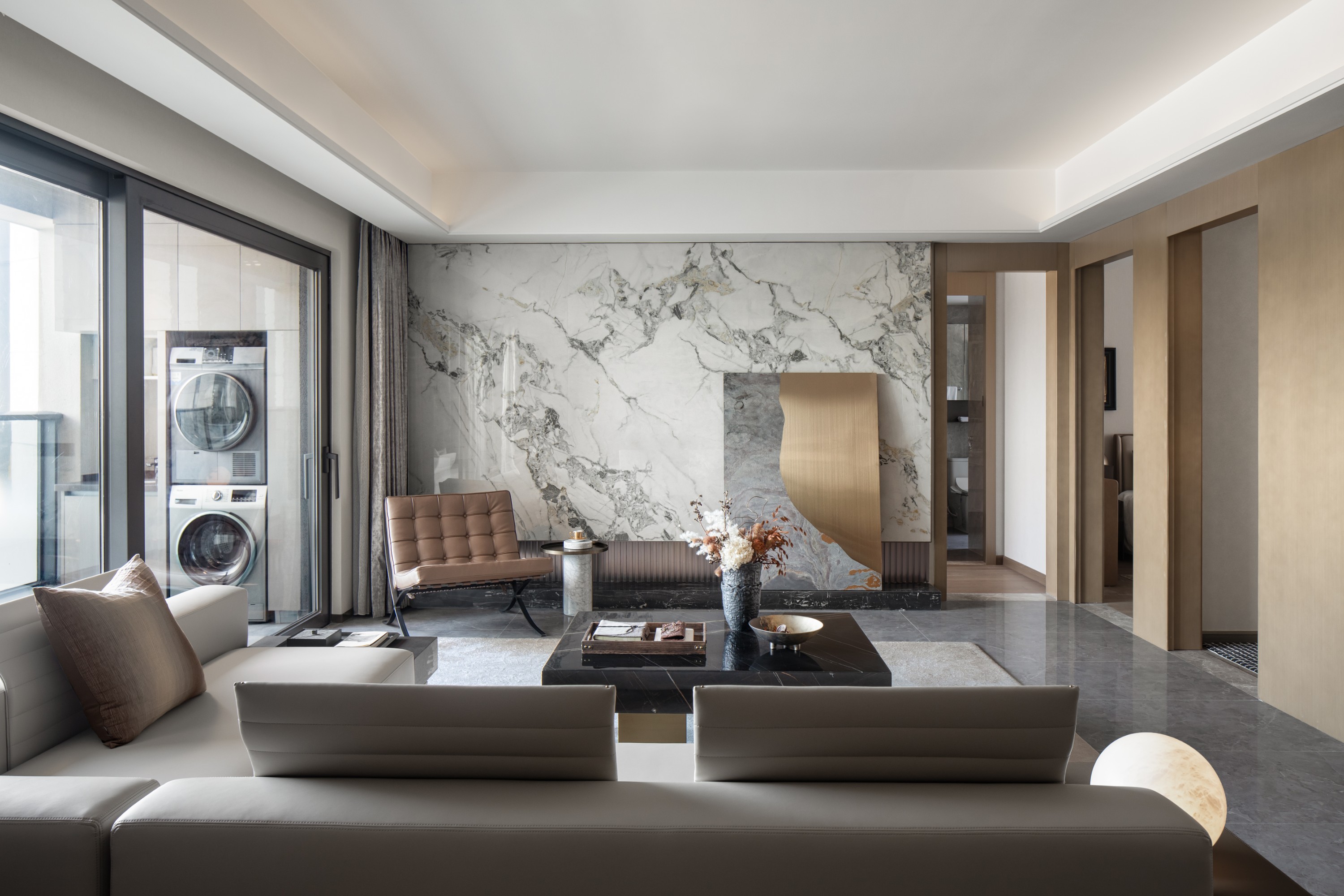 優(yōu)雅而舒緩的色調(diào)給人以明亮的視覺感受,家具以不同的材質(zhì)碰撞,透露著細(xì)細(xì)肌理紋路讓整體空間產(chǎn)生無限的延展性。
