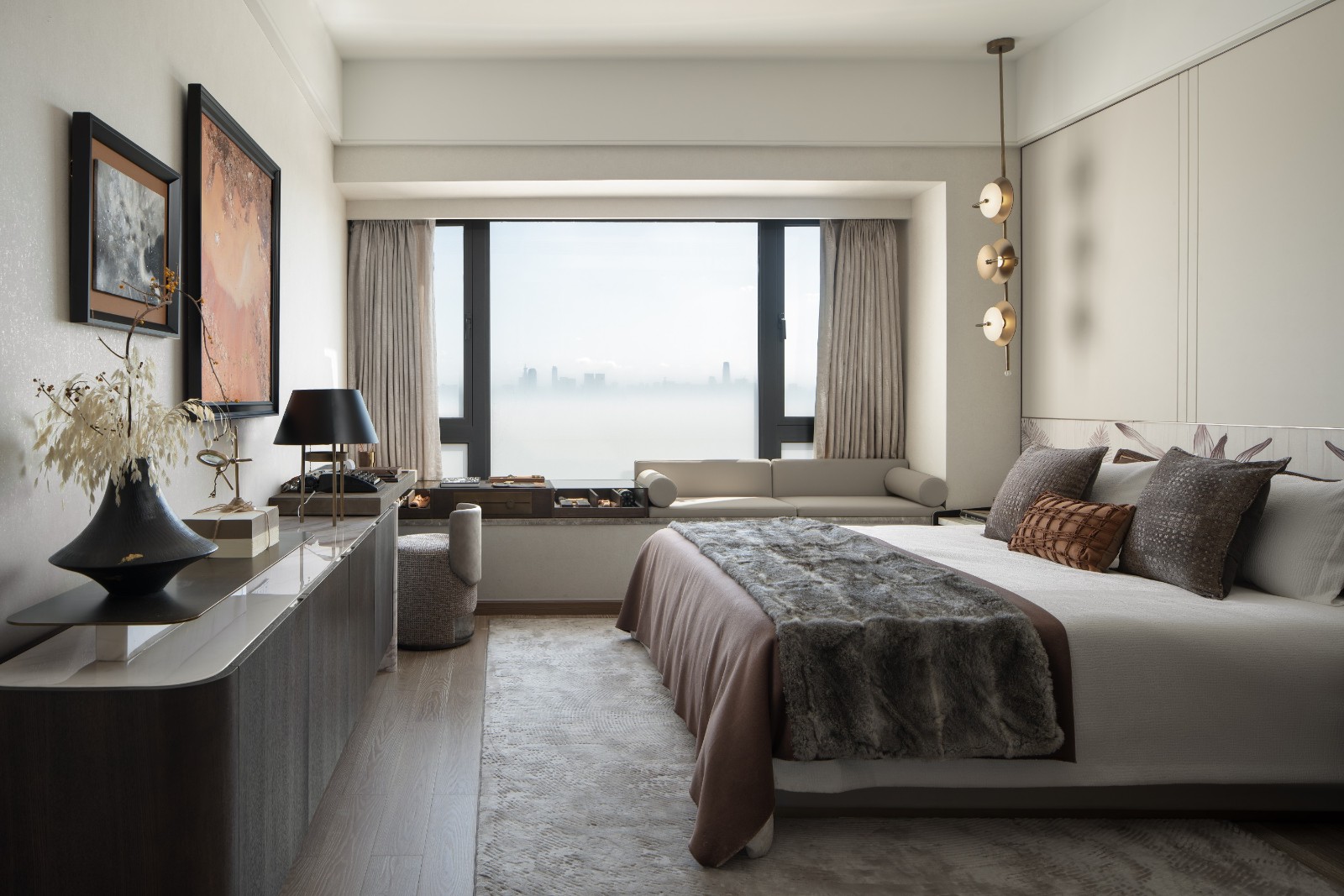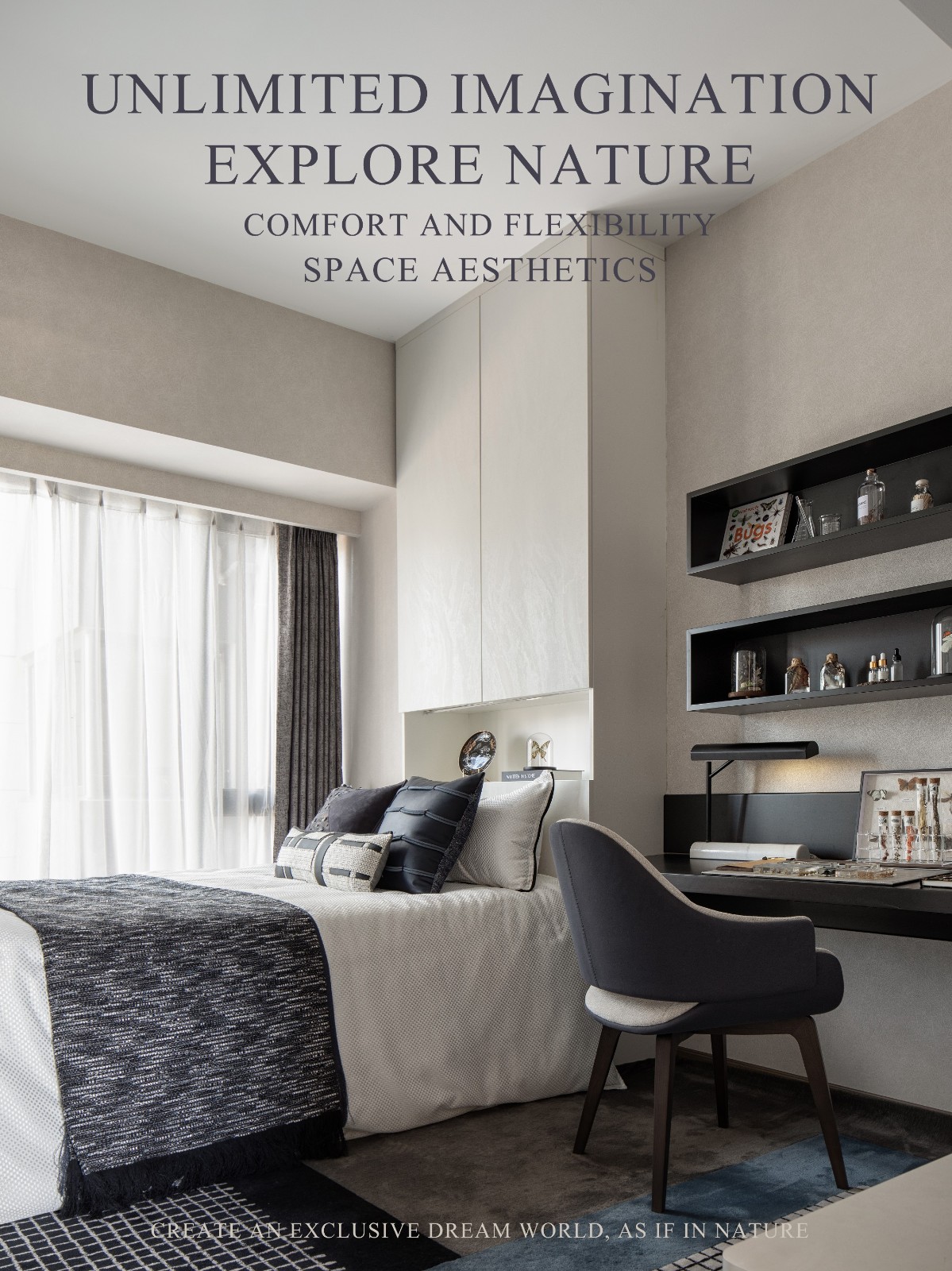 喧囂的世界里,需要一處寧靜之地來修身養(yǎng)性,在獨處的時光里開展自我對話,木飾面的溫潤營造柔和舒適的視覺感受。