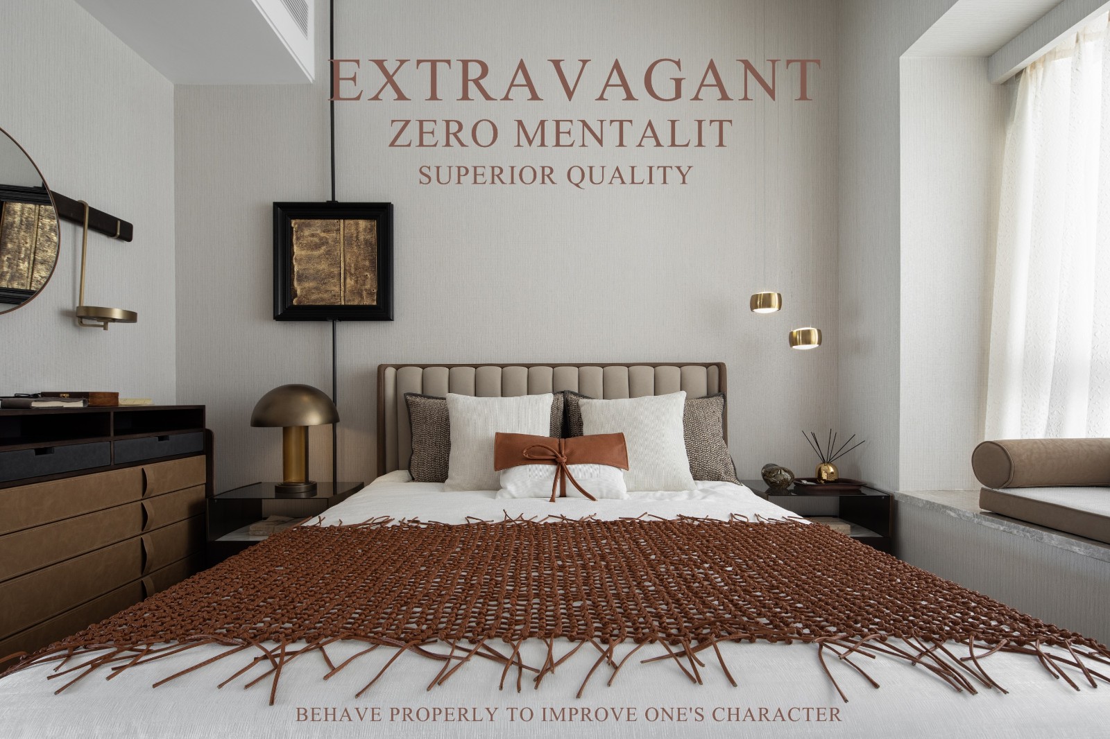 通過皮質(zhì)、棉麻的匯合調(diào)配,豐富人文韻味,呈現(xiàn)了一個心靈的坦然,精神的放松、修身養(yǎng)性的淡泊空間。