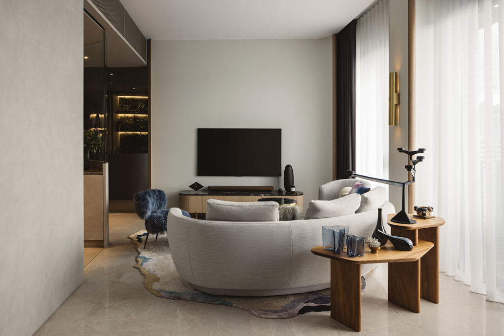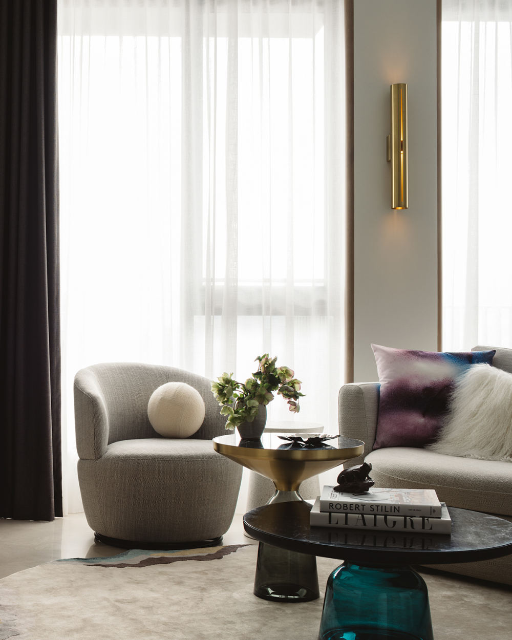 “自然界中不存在直線”這是我們的客戶分享的一句話,在我們經(jīng)常在這套公寓中尋找曲線和紋理時(shí),它為我們策劃家具和陳設(shè)提供了靈感。