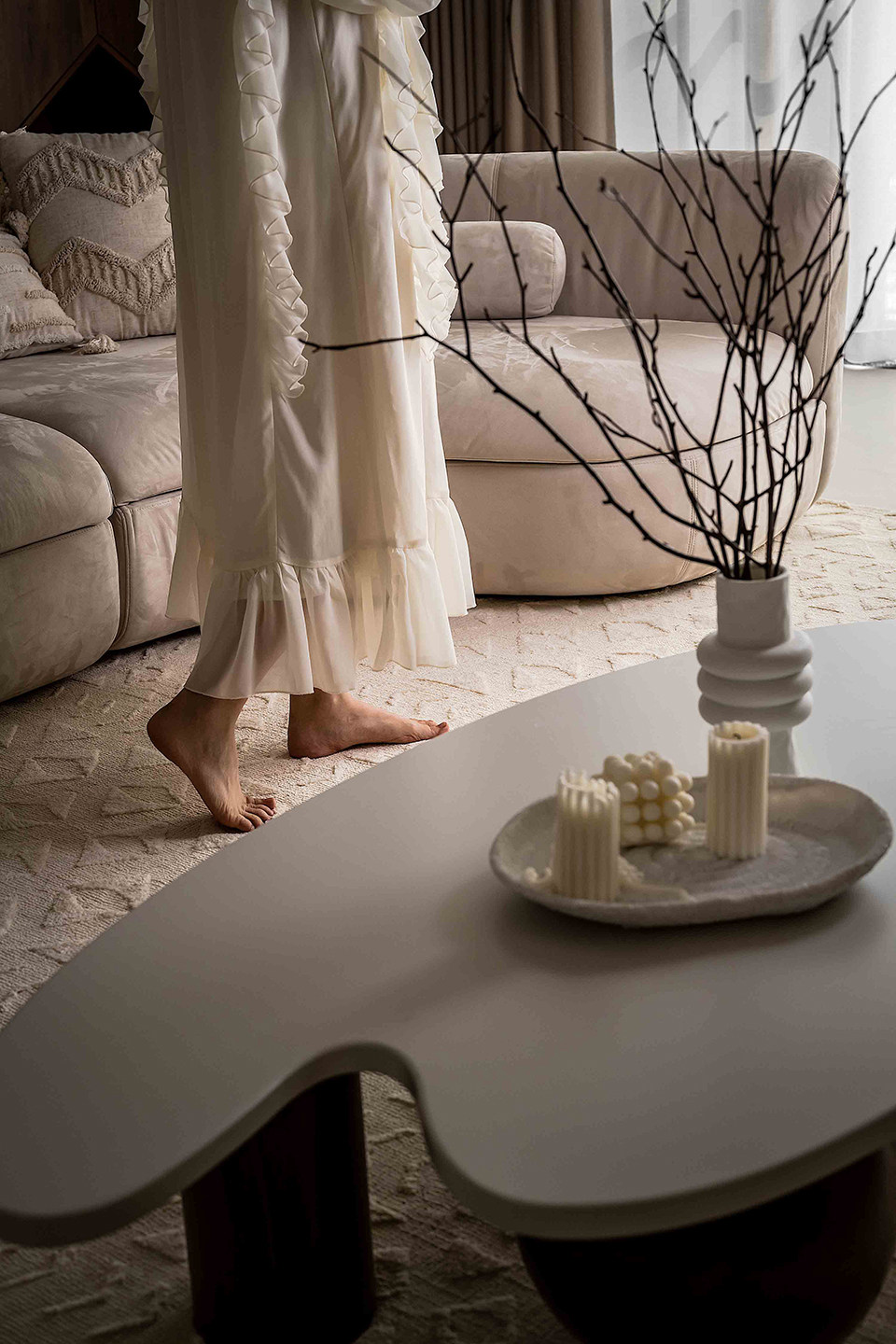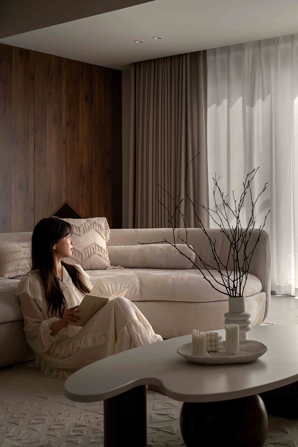 本案名字叫《初居》,意為初始之居所,本案想要呈現(xiàn)的理念是,人對于居所最初始,最簡單的向往與期望,拋去浮華,回歸初始。在社會的現(xiàn)代進程中,能夠在初居空間中放下疲憊、煩躁、不安。撫慰內(nèi)心,感受生活最真實,最簡單的樣子。小云對于生活有著浪漫主義的理解,所以我們在設(shè)計中,做了很多氛圍的表現(xiàn)(例如:客廳的電子壁爐、花園亭子的酒精壁爐以及飄逸的窗紗等等元素來烘托氛圍感),她喜歡做手磨咖啡,看書,養(yǎng)花,烘焙。我們將這些愛好結(jié)合以后,最終呈現(xiàn)了《初居》的樣子。
