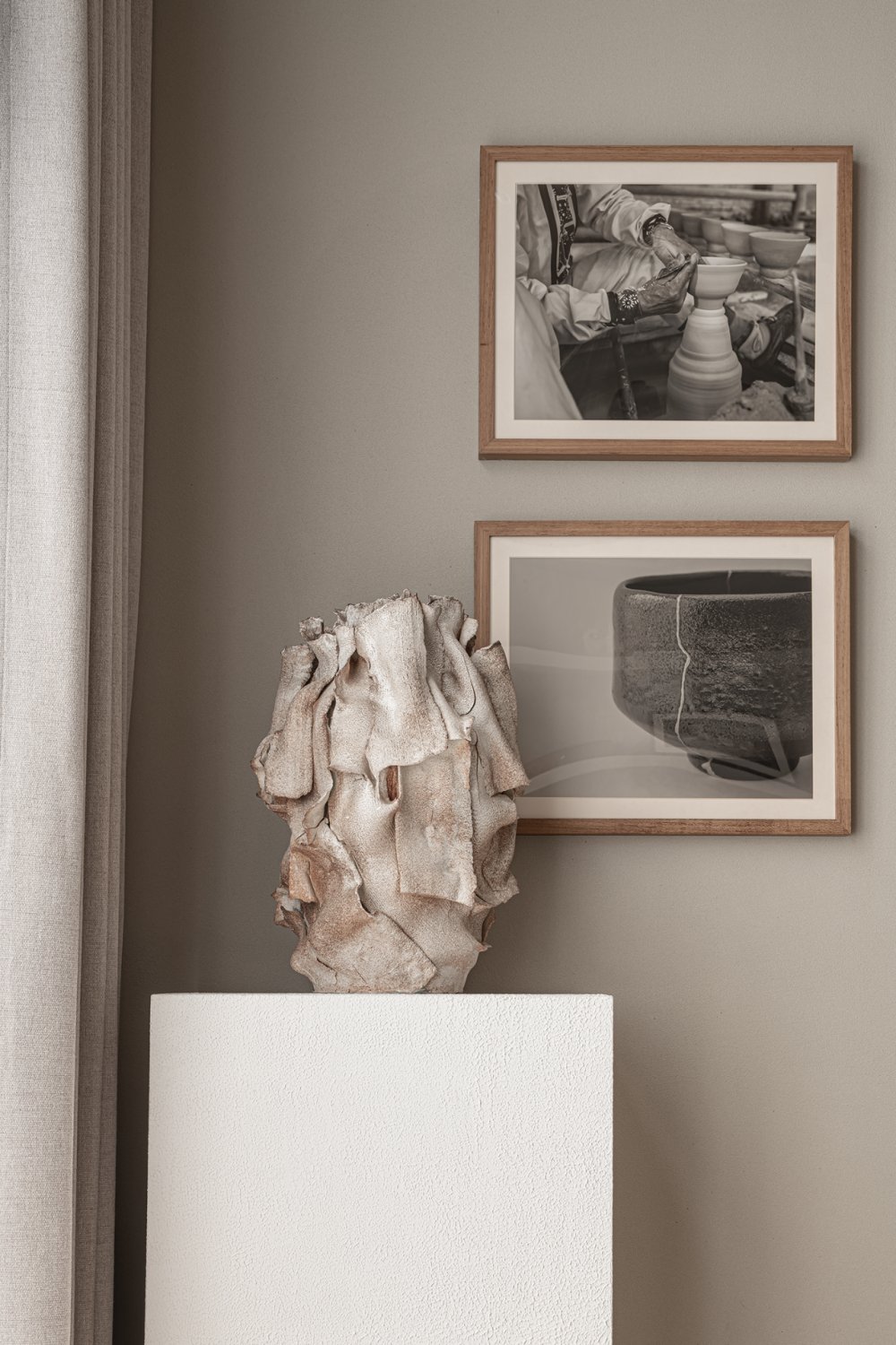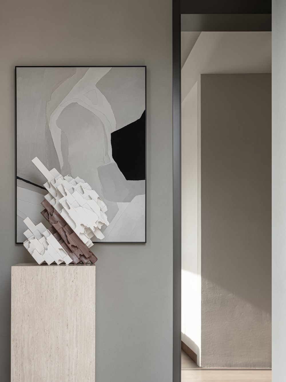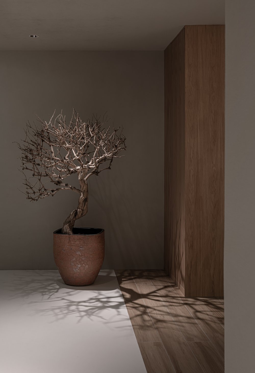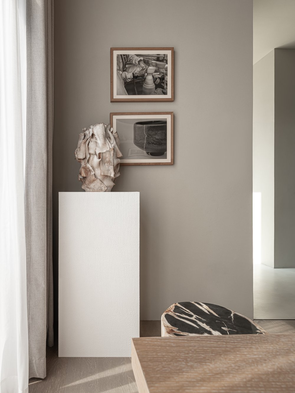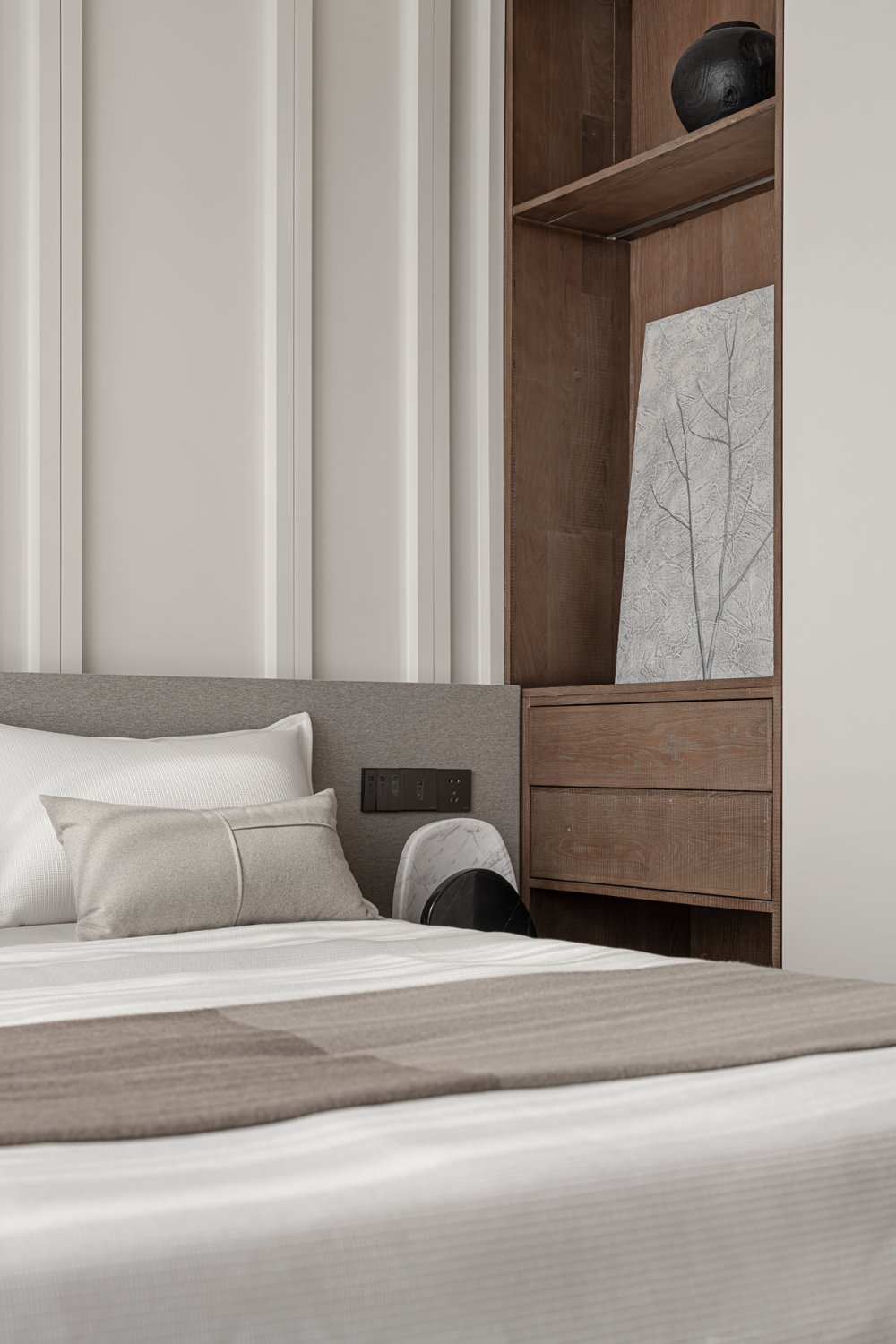 一縷柔和光線或疏松淡雅的色調(diào),細(xì)膩溫潤(rùn)地應(yīng)和著材料紋理所帶來(lái)的厚重感。無(wú)數(shù)細(xì)節(jié)在矛盾中交融,如同生活的回響。
