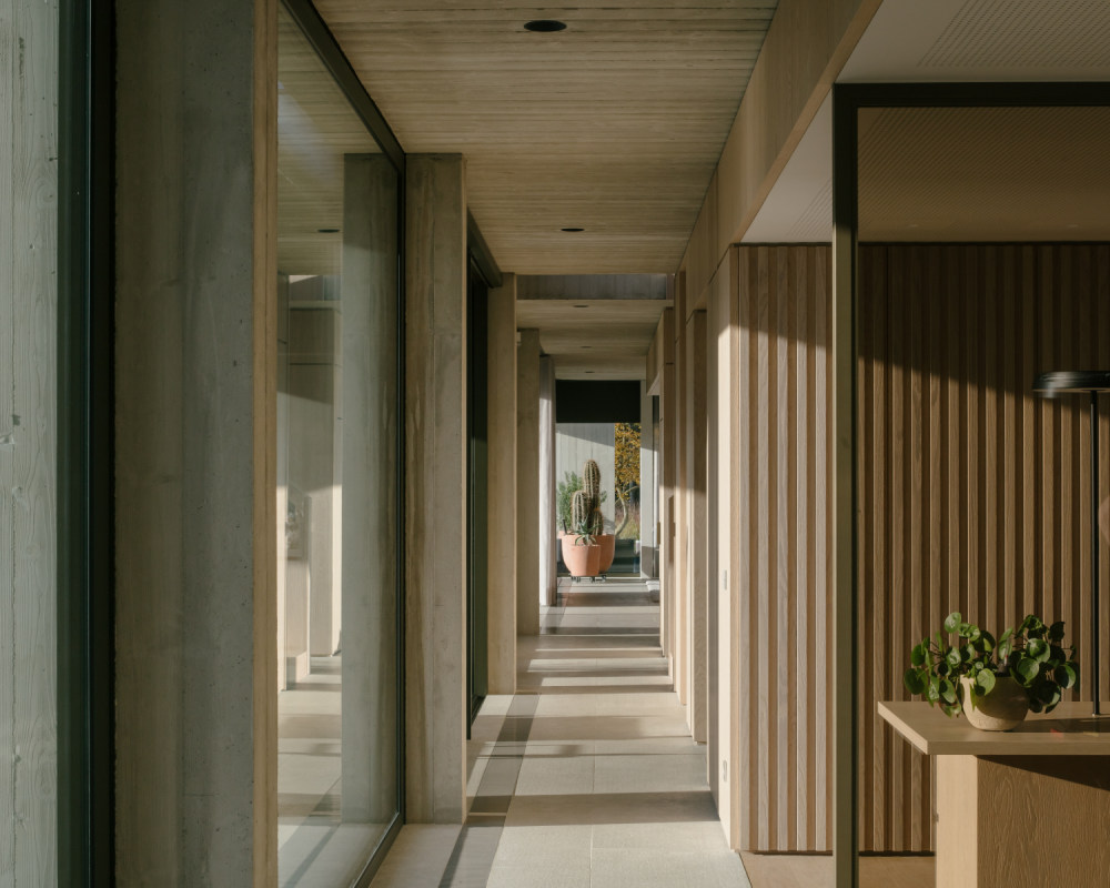 - 這些材料以粗略但熟練的方式應(yīng)用。 天然石材地板和橡木細(xì)木工制品經(jīng)過拉絲處理,增添了獨(dú)特的觸感。 木制品簡潔,沒有多余的裝飾,就像建筑的骨架。 書架和廚房設(shè)備部分開放,櫥柜門采用木板條和明顯的把手,門道不僅沒有隱藏,而且突出突出。 為了將室外帶入室內(nèi),每個空間都裝飾有合適的家具、裝飾、建筑照明,以及站立和懸掛的植物。 這已經(jīng)擴(kuò)展到外面,露臺和室外廚房位于遮陽篷的陰影下。
