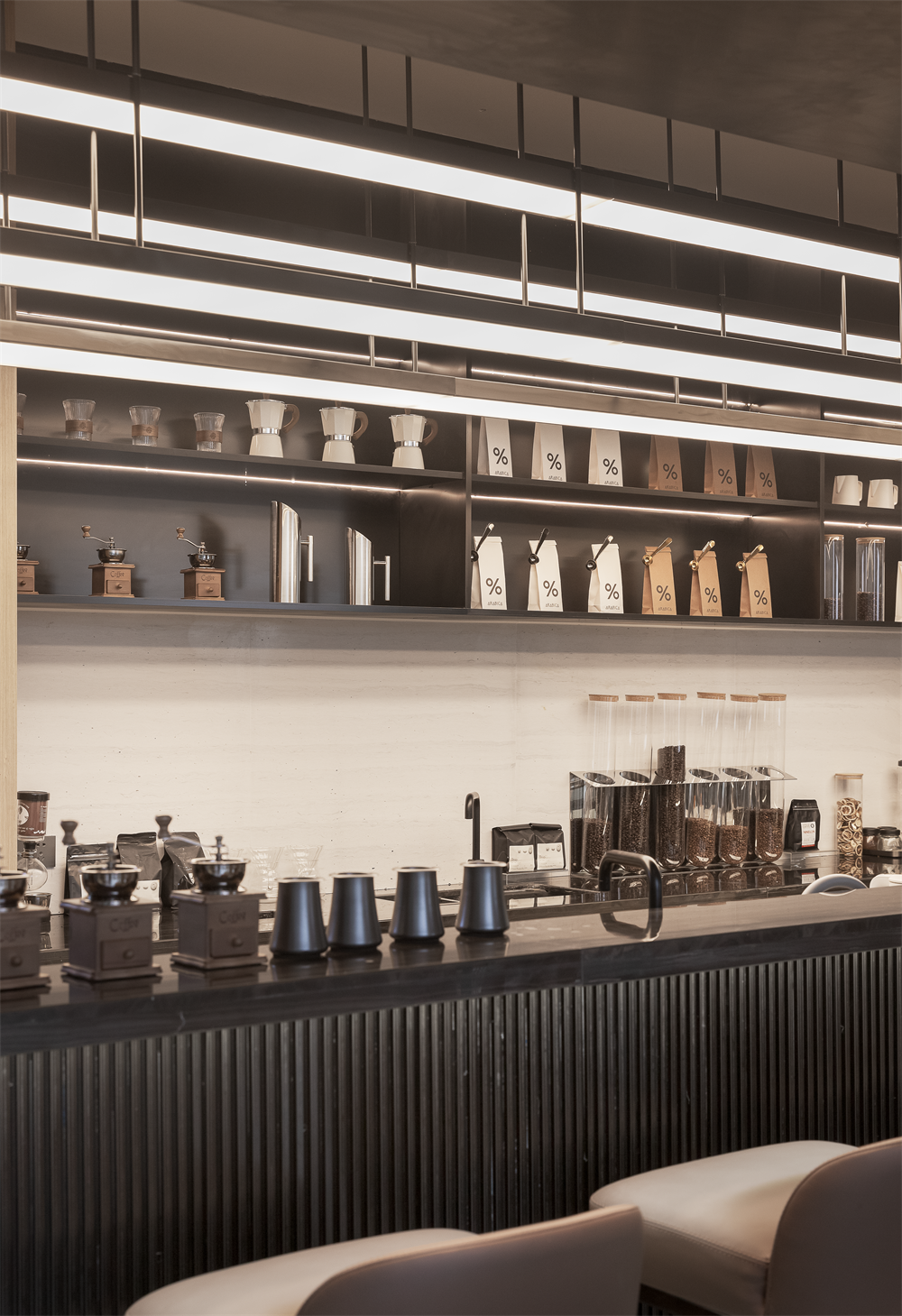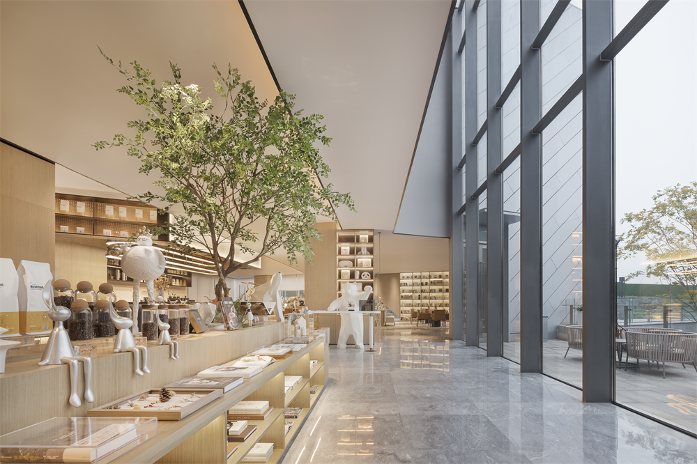 設(shè)計(jì)將商業(yè)街景融入于空間中,豐富的集市生活在空間中有節(jié)奏的一一發(fā)生,造就蘊(yùn)含了當(dāng)代美學(xué)的藝術(shù)廊??Х劝稍谡w空間布局中是一個(gè)過(guò)渡空間,以社交場(chǎng)景讓空間轉(zhuǎn)向都市化,散發(fā)出時(shí)尚氣息。