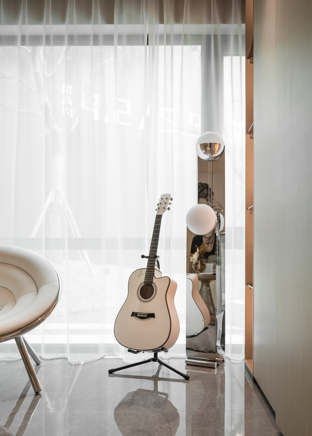 入口玄關(guān)以造型結(jié)合色彩,構(gòu)建強(qiáng)視覺(jué)沖擊力,讓整個(gè)空間氣質(zhì)的潮流感得到升華。