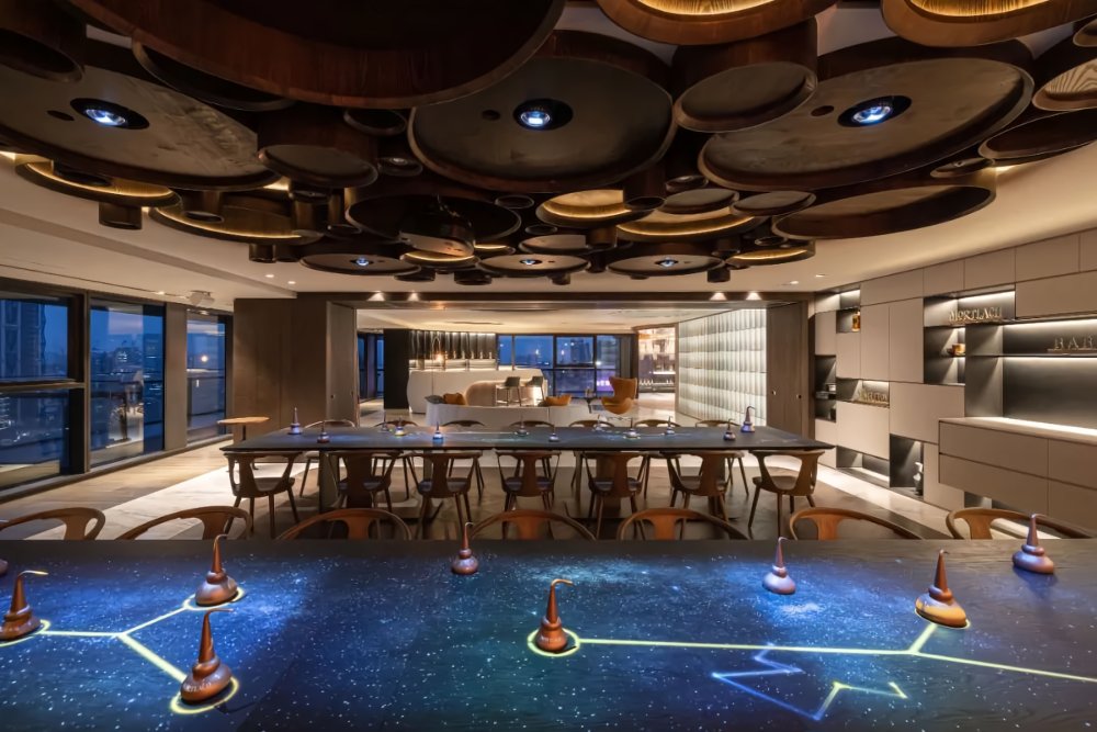 水滴狀的蒸餾壺銅為空間概念的主軸,酒廠的據(jù)點蔓延於紅銅,傳遞品牌蒸餾技術(shù)的歷史痕跡──舌尖上的風味之旅