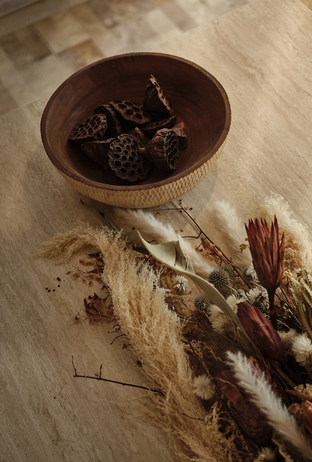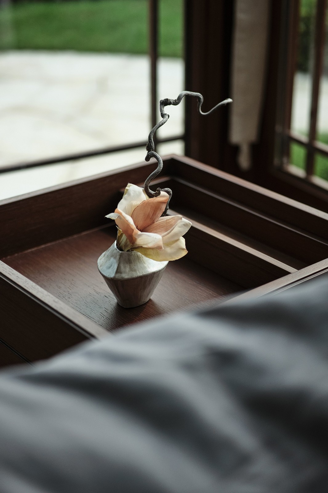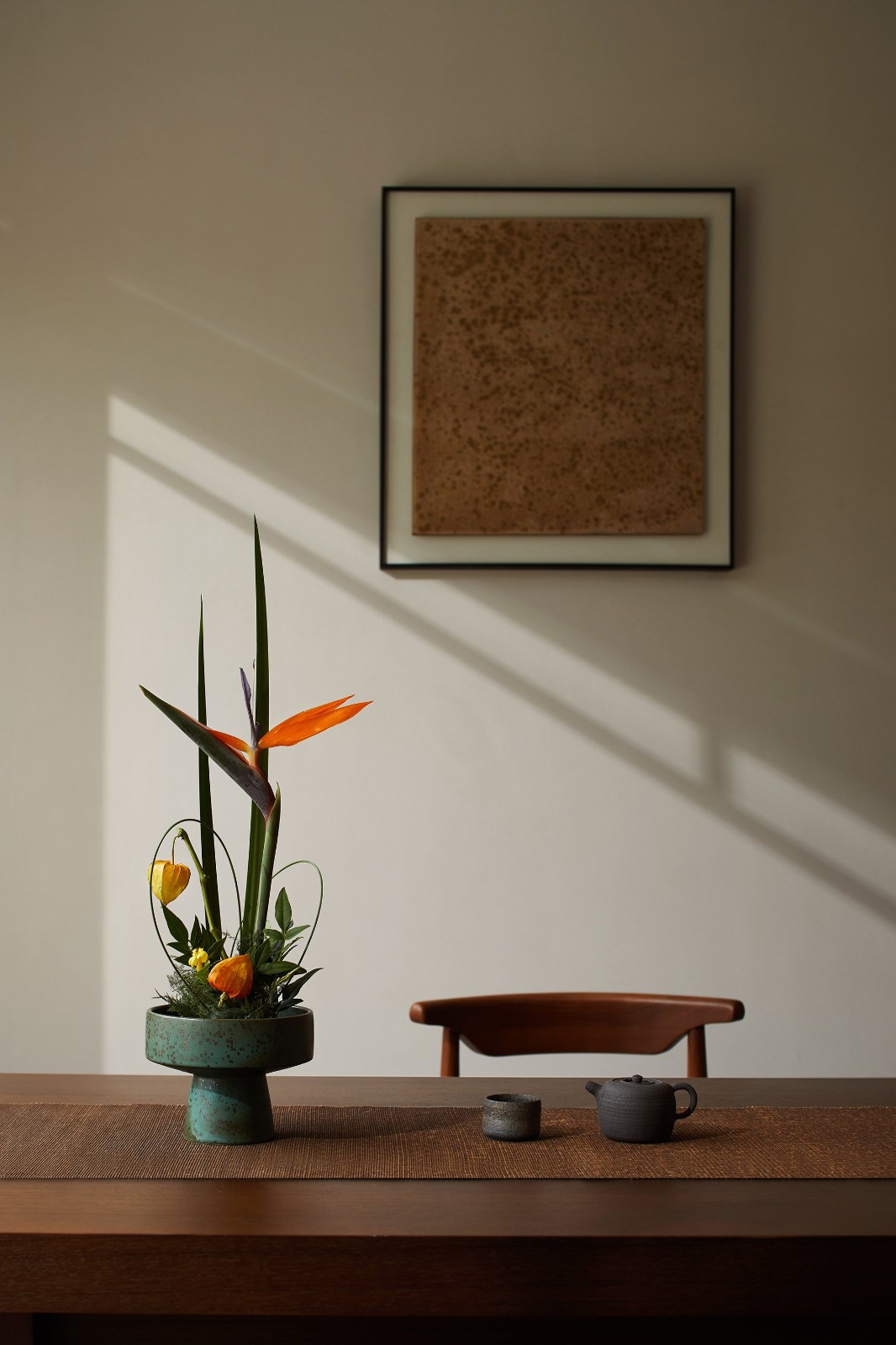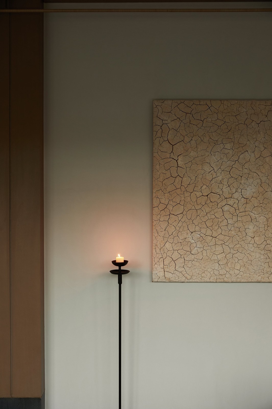 精致的器皿里蘊(yùn)含著使用者在生活中所追求的儀式感,在入口軟裝的選型上,融入了一些自然意向,結(jié)合矮凳和條桌的選型,放大了空間的禪意氛圍,并增加了人們?cè)诖颂幇l(fā)生交流的可能性。