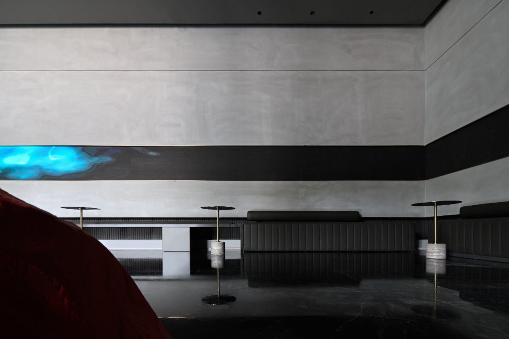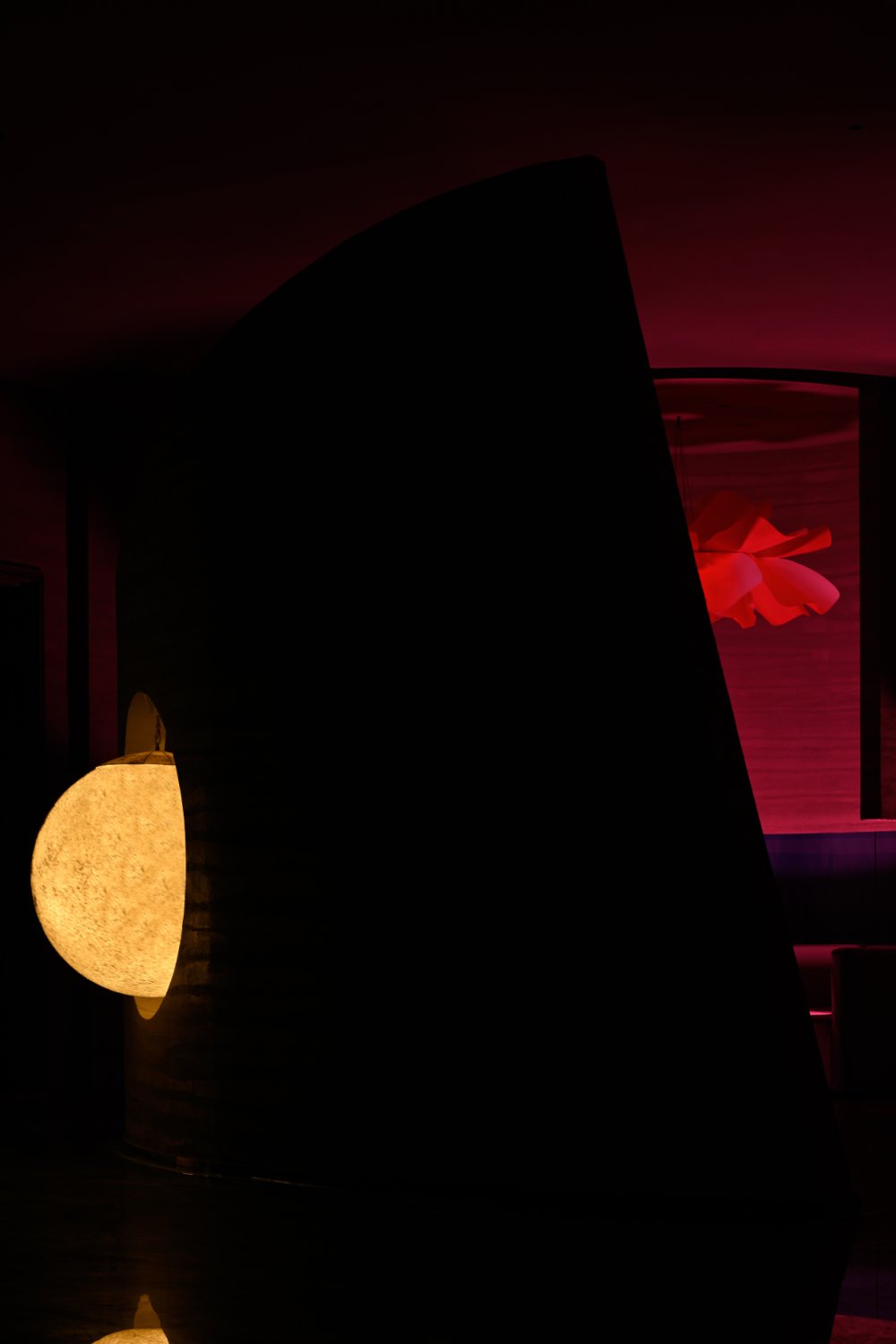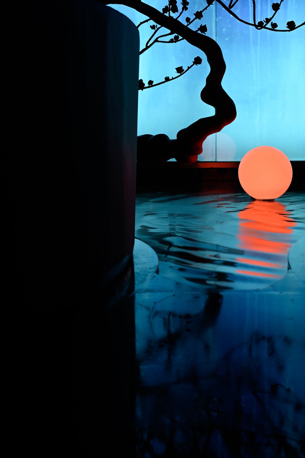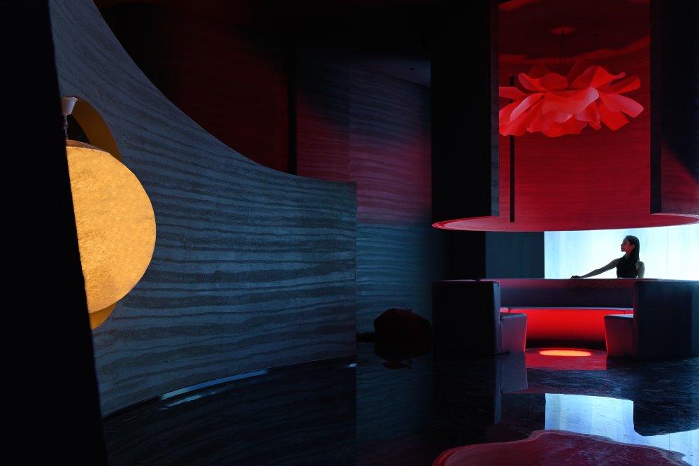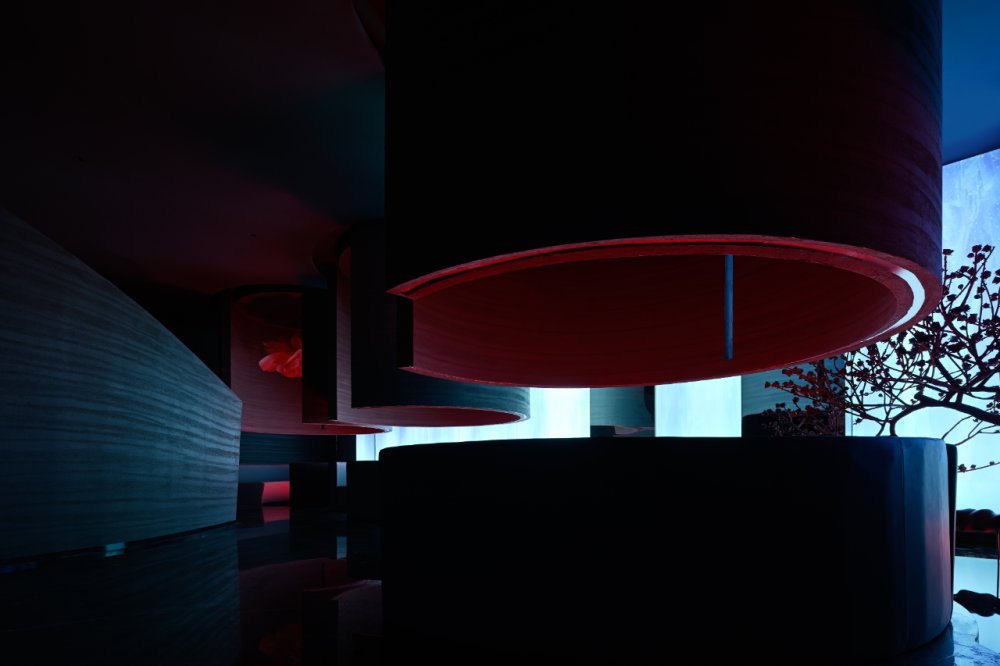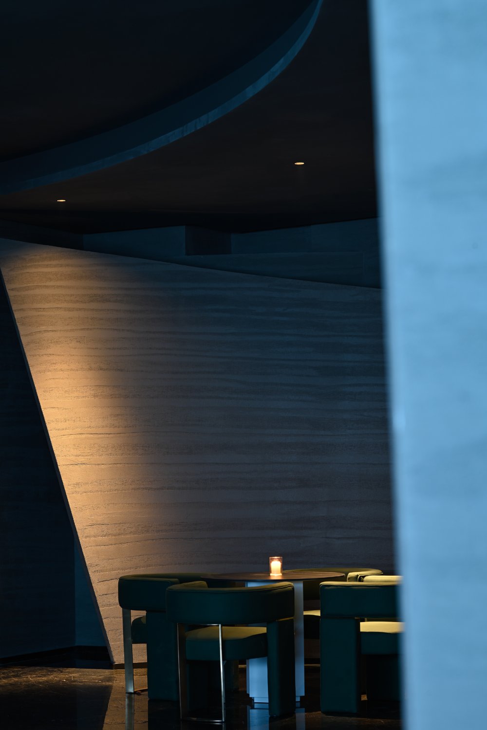 - 山與水的結(jié)合,是江南小景的象征。錯落有致的線條盤踞在整個空間之上,搭配著暖黃的燈光,“野蠻”地從空間生長開來。在整體的幽暗環(huán)境的襯托下,一絲微光點綴,讓光與“影”曖昧互融。