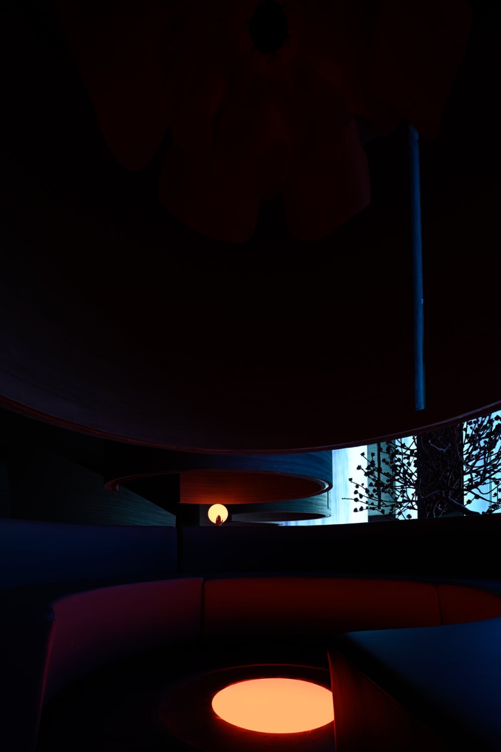 - 獨行獨坐,獨唱獨酌還獨臥。是“孤獨”或是“獨自”?似圓非圓的卡座,錯落分布。既滿足了個人的私密要求,又拉近了人與人之間的心靈感應,將自己全身心置于巨大的背景;既是看客,又是過客。
